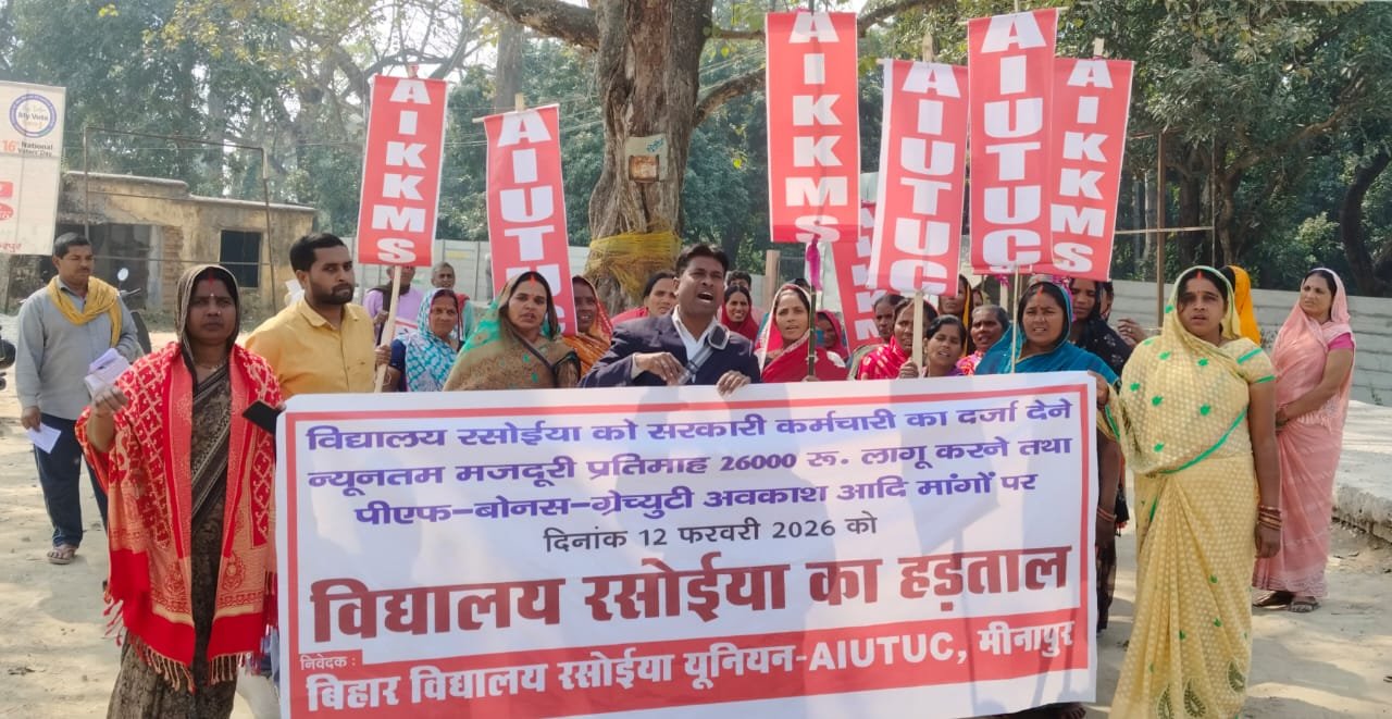चार श्रम संहिताओं के विरोध में मीनापुर में प्रदर्शन, राष्ट्रव्यापी हड़ताल को समर्थन