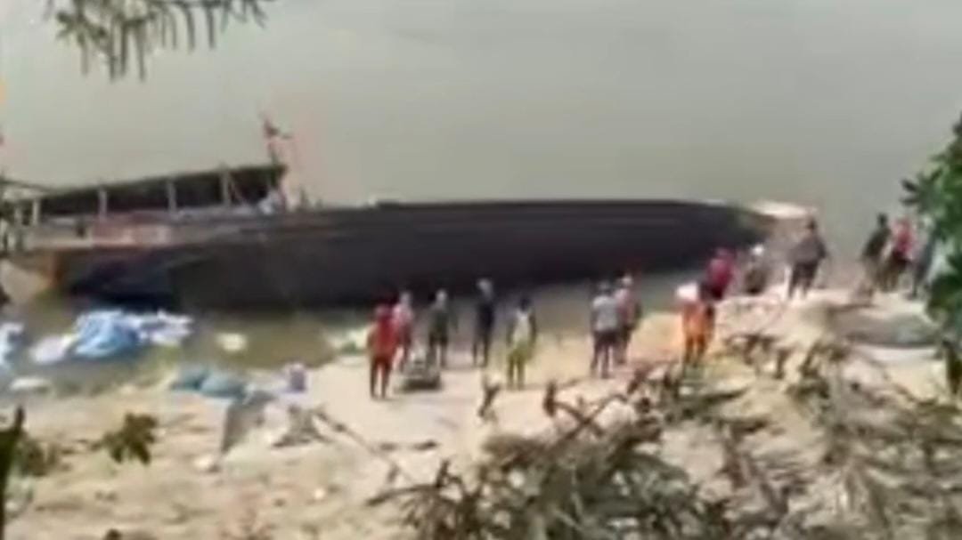 गंगा नदी में डूबी सामग्री लदी नाव, लोगों ने कूदकर बचाई जान, हादसे का लाइव वीडियो वायरल