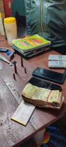 घर की तलाशी के दौरान बेडरूम में तकिये के नीचे छिपाकर रखी चार जिंदा गोली बरामद की गई। इसके अलावा दो इलेक्ट्रॉनिक तराजू, चार एंड्रॉयड मोबाइल फोन, तीन डायरी जिनमें पैसों और बिक्री का हिसाब-किताब दर्ज था, भी जब्त किया गया। पूछताछ में आरोपी ने स्वीकार किया कि तराजू से स्मैक की तौल कर बिक्री करता था और बरामद नकद राशि उसी धंधे की है। मोबाइल जांच में व्हाट्सएप पर लेन-देन और फोटो भी मिले हैं।