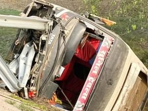 -बख्तियारपुर–मोकामा फोरलेन पर बड़ा सड़क हादसा: तीर्थयात्रियों से भरी बस पलटी, एक महिला की मौत, 24 से अधिक घायल