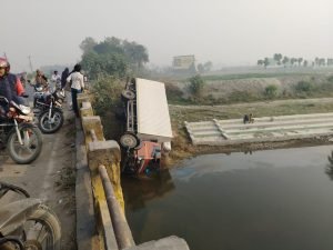 -मुजफ्फरपुर में बड़ा हादसा: करजा पुल की रेलिंग तोड़कर कंटेनर नीचे गिरा, अफरा-तफरी मची