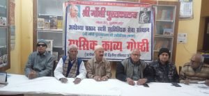 मुजफ्फरपुर। रविवार को गांधी पुस्तकालय, गोला रोड, मुजफ्फरपुर के सभागार में मासिक कवि गोष्ठी सह मुशायरा का भव्य आयोजन किया गया। कार्यक्रम की अध्यक्षता वरिष्ठ हास्य कवि डॉ. जगदीश शर्मा ने की, जबकि संचालन सुमन कुमार मिश्र ने किया।