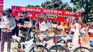 समारोह का सबसे भावुक पल वह रहा जब टॉपर्स को मंच पर बुलाकर उनके हाथों में नई साइकिल और चेक सौंपा गया। इस सम्मान से छात्रों के चेहरे खुशी से खिल उठे और पूरे परिसर में तालियों की गूंज सुनाई दी।