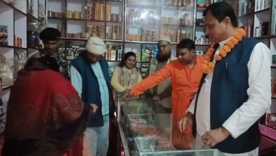 बन्दरा में कॉस्मेटिक दुकान का उद्घाटन, पूर्व विधायक निरंजन राय ने काटा फीता